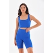 Kallima Mavi Toparlayıcı Esnek Fitilli Spor Crop-biker Tayt Takım