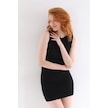 Kallima Siyah Kolsuz Diz Üstü Mini Fitilli Esnek Kalem Elbise Siyah