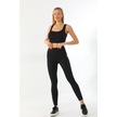 Kallima Siyah Toparlayıcı Yüksek Bel Fitilli Spor Tayt-crop Takım