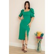Kalopya Kare Yaka Prenses Kol Midi Krep Elbise 9003- Yeşil