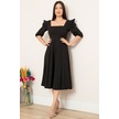 Kalopya Kol Pileli Volanlı Elbise 924-2949- Siyah