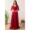 Kalopya V Yaka Turvakar Kol Dantel Uzun Abiye Elbise 3810-2-