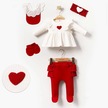 Kalp Baskılı Kutulu 5 Parça Hastane Çıkışı Seti %100 Pamuk Kırmızı