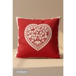 Kalp Desenli Çift Taraflı Kırlent Kılıfı - 45x45 Cm Yılbaşı Dekoratif Kırmızı - Beyaz