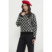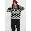 Kalp Desenli Sıfır Yaka Triko Kazak - Siyah 001