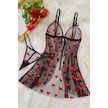 Kalp Desenli Siyah Transparan Gecelik Brf1378 Siyah