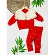 Kalp Nakış Dörtgen Yakalı Fitilli Tayt Mevsimlik 2 Parça Set Kırmızı