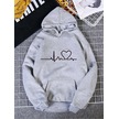 Kalp Ritimli Sweatshirt - Gri Baskılı Oversize Kalın Kışlık Kapüşonlu Gri