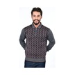 Kamalı Erkek Çelik Örgü Gömlek Yaka Fermuarlı Polo Yakalı Çizgili Desen Tüylenmeyen Triko Kışlık Baba Kazak Gri