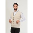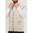 Kamalı Erkek V Yaka Triko Düğmeli Cepli Çizgi Desenli Regular Fit Premium Tüylenmeyen Örgü Yelek Taş
