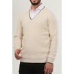 Kamalı Erkek V Yaka Triko Uzun Kol Standart Fit Tüylenmeyen Triko Kışlık Örgü Kazak Taş