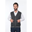 Kamalı Gri Erkek Çelik Örgü Düğmeli Cepli Kazayağı Desen Tüylenmeyen Triko Kışlık Kazak Yelek Gri