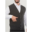 Kamalı Gri Erkek V Yaka Triko Düğmeli Cepli Çizgi Desenli Regular Fit Tüylenmeyen Örgü Yelek Gri