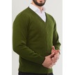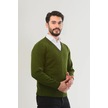 Kamalı Haki Erkek V Yaka Triko Uzun Kol Standart Fit Tüylenmeyen Triko Kışlık Örgü Kazak Haki