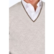 Kamalı Krem Erkek Çelik Örgü Intersiye Kışlık Kalın Triko V Yaka Triko Örgü Tüylenmez Süveter Taş