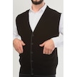 Kamalı Siyah Erkek V Yaka Triko Düğmeli Cepli Çizgi Desenli Regular Fit Tüylenmeyen Örgü Yelek Siyah