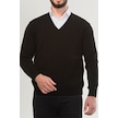 Kamalı Siyah Erkek V Yaka Triko Uzun Kol Standart Fit Tüylenmeyen Triko Kışlık Örgü Kazak Siyah