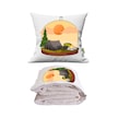 Kamp Baskılı Dekoratif Yastık Kırlent Opsiyonel Battaniye 2 İn 1 Çok Renkli