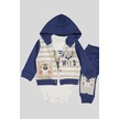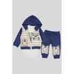 Kamp Desenli Kapüşonlu % 100 Pamuk Erkek Bebek Takımı Lacivert