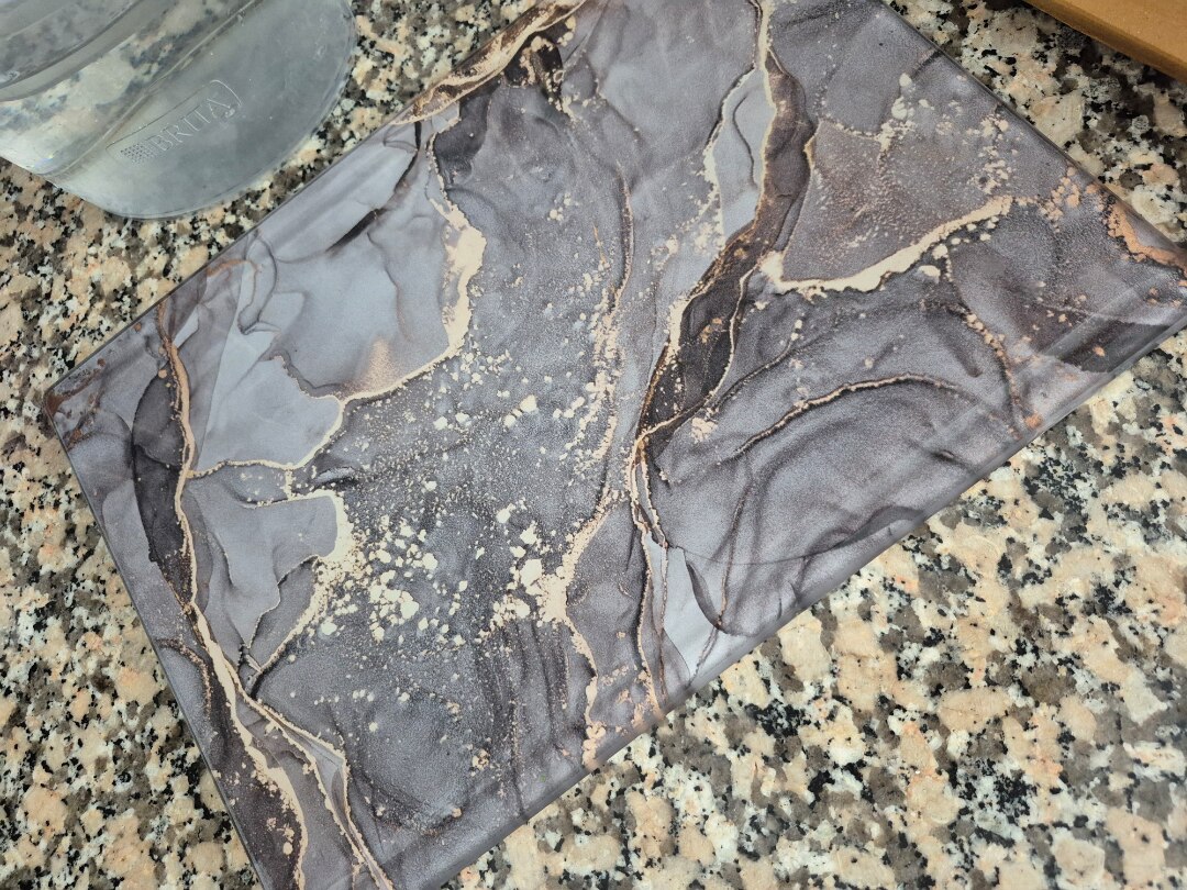 Kanallı Cam Kesme Tablası | Gri Gold Mermer | 25cm x 35cm