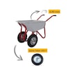 TEKERİN SAGA SOLA HAREKET ETMESİNİ ÖNLEYECEK MEKANIZMA YOK SADECE MİLDEN ÇEKER ÇIKMASIN DİYE SEKMAN VAR. TEKERLERİ ŞASE KISMINA DOĞRU HAREKETİNİ ÖNLEYECEK BİR YUVA FARURA OKLASI GEREKİR. BU ŞEKİLDE EL ARABASINI KULLANAMIYORZ.