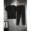 Kanat T-shirt Eşofman Altı Jogger - Siyah Baskılı Alt Üst Takım Oversize Bisiklet Yaka Siyah