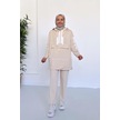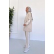 Tesettür İkili Takım Uzun Tunik Bol Paça Pantolon 4006-bej Bej