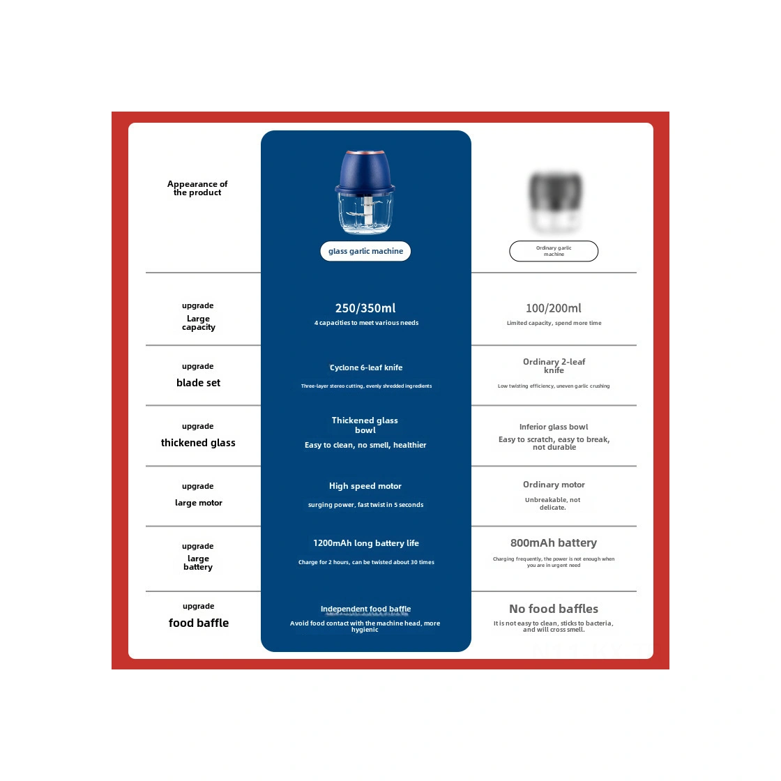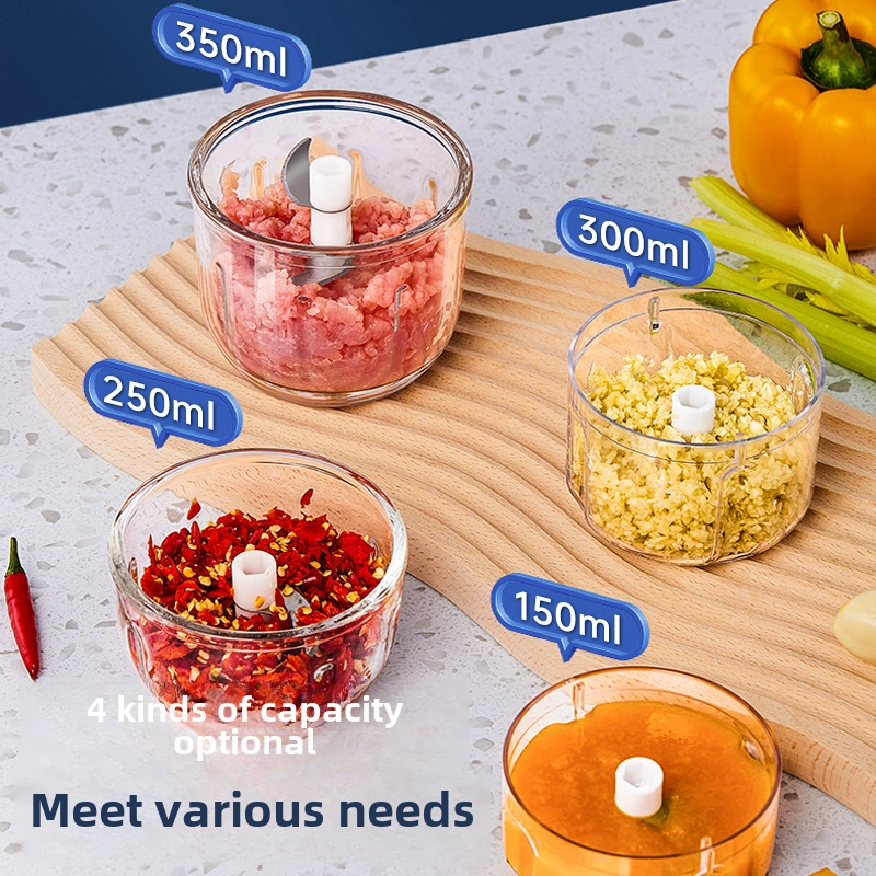 Kangvka Ev Kullanıma Elektrikli Sarımsak Crusher - 350ml Mavi Kalın Cam Kase + 6 Bladeslı Bıçak, Et Ve Sebzeleri Hızlı Çizer Diğer