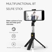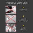 Kangvka K10 Çelik Ayarlanabilir Selfie Çubuğu - 360 Döner Telefon Tutucu, 7.64-27.6 İn Uzunluk Aralığı, Siyah Siyah