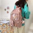 Kangvka Kadınlar İçin Üniversite Lise Öğrenci Sırt Çantası, Güvenilir Kumaş, Beyaz + İnek Desen + Rozet, Şık Ve Konforlu Beyaz