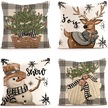 Kangvka Noel Baskılı Yorgan Kılıfı, Kuzgun Geyik Desenli, Ev Araba Koltukluk, Linen 45x45 Cm, Tek Kılıf, Ct196-3 Diğer