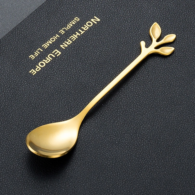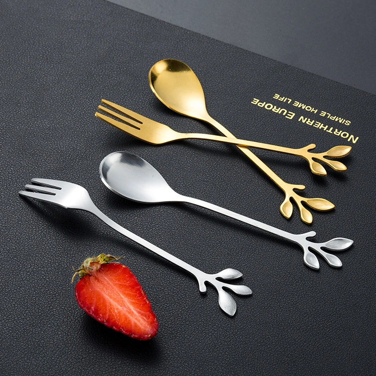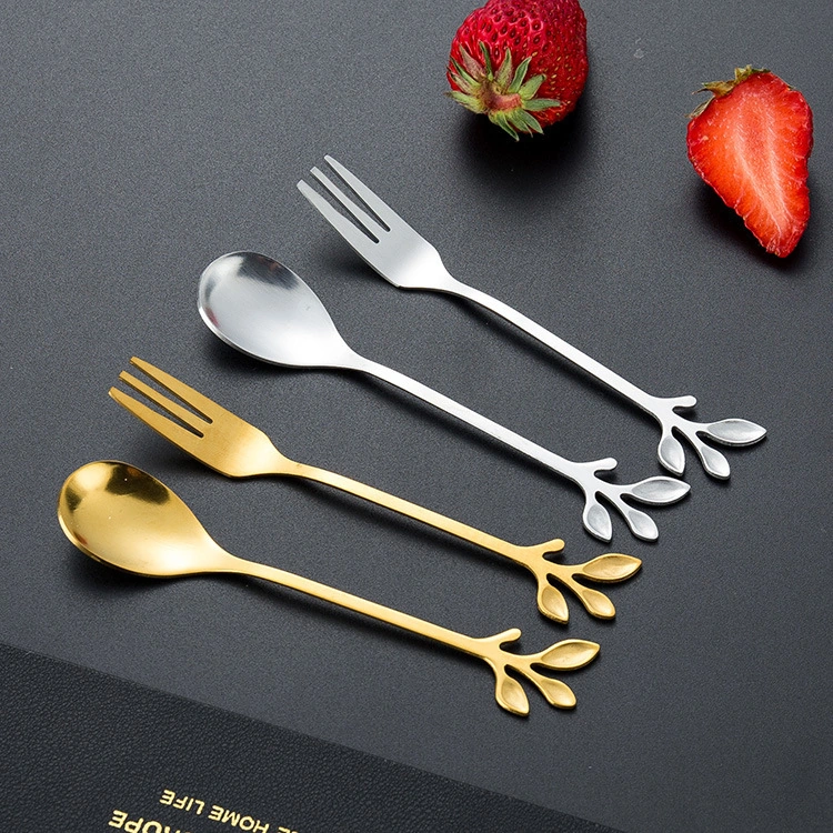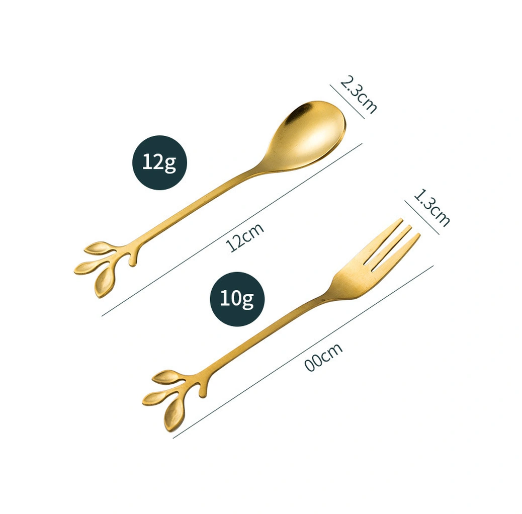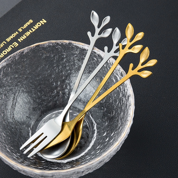 Kangvka Titanyum Kaplı Paslanmaz Çelik Gölge Dal Şekilli Kahve Karıştırıcı, Kurabiye Ve Meyve Kaşığından Oluşan Zengin Tabak Ürünleri Seti Diğer