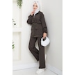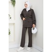 Tesettür İkili Takım Uzun Tunik Bol Paça Pantolon 4006-kahve Kahverengi