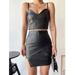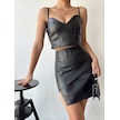 Kapaklı Asimetrik Model Deri Etek Siyah S240106 Siyah