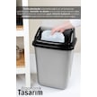 Kapaklı Plastik Çöp Kovası - Ev Ofis Banyo Mutfak Çöp Kovası Gri 30 Litre Gri