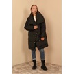 Kapitone Kumaş Şal Yaka Bol Kalıp Yaka Detay Çıtçıtlı Kadın Mont-siyah Çok Renkli