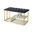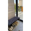 Kapitoneli Kapı Önü Metal Puf Bench Ayakkabılık Mavi