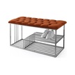 Kapitoneli Puf Bench Kapı Önü Metal Ayakkabılık Turuncu