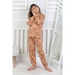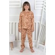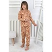 Kaplan Desenli Kız Çocuk Pijama Takımı Kahverengi