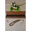 Kaplan Gözü Taşlı 33 Lü Erkek Tesbih Enerji Taşı, Ahşap Kutulu Çok Renkli