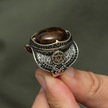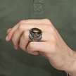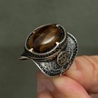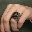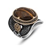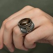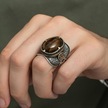 Kaplan Gözü Taşlı Süleyman Mührü 925 Gümüş Erkek Yüzük Beyaz