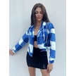 Kapşonlu Ekose Polar Crop Ceket -mavi Karışık