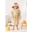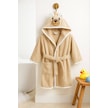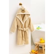 Kapşonlu Hayvan Desenli Çocuk Banyo Deniz Plaj Bornozu %100 Pamuklu Bej