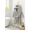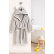 Kapşonlu Hayvan Desenli Çocuk Banyo Deniz Plaj Bornozu %100 Pamuklu Gri