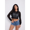 Kapuşonlu Dantel Bluz Siyah