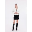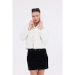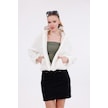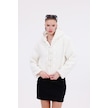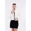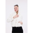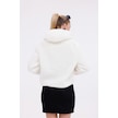 Kapüşonlu Düğmeli Peluş Mont - Kadın Beyaz