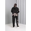 Kapüşonlu Fermuarlı Baskılı Takım Siyah