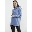 Kapüşonlu İçi Pamuklu Kalın Sweatshirt - Mavi Ekru