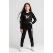 Kapüşonlu Kanguru Cepli Baskılı Kız Çocuk Eşofman Takımı Siyah