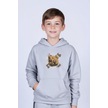 Kapüşonlu Kanguru Cepli Beear Baskı Detaylı Erkek Çocuk Sweatshirt Gri